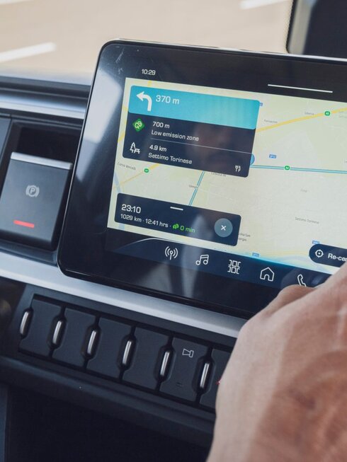 Mit dem IVECO ON Portal, intelligenter Routenführung und der einzigartigen IVECO eRemote Control können Sie Fahrten planen, Einstellungen aus der Ferne optimieren und Ihre Flotte einsatzbereit halten. Die Faherhaussteuerung über den DRIVER PAL hilft den Fahrenden, sicher, effizient und nachhaltig zu fahren.